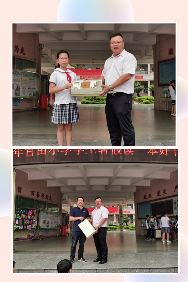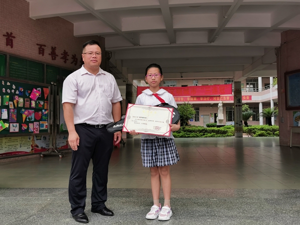 接下來頒發的是優秀家長家委、書香家庭:歐陽益樊家長歐陽德武獲龍江鎮優秀家長稱號;熊利平家長熊勇明、何夢韓家長余麗獲龍江鎮優秀家委稱號;六1班曾夢雅、六2班曾瑋堅家庭獲校園親子書香家庭稱號。
