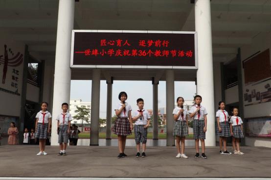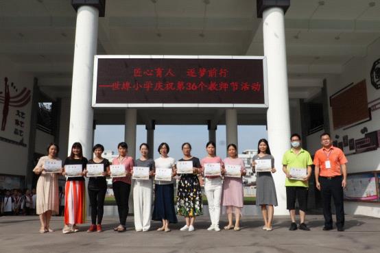 接下來(lái),,世埠小學(xué)八名學(xué)生代表上臺(tái)向全體教師獻(xiàn)詞。耕耘密無(wú)痕,潤(rùn)物細(xì)無(wú)聲,他們用滿懷感恩的聲音向所有教師獻(xiàn)上節(jié)日的祝福。伴隨著陣陣感動(dòng),羅校長(zhǎng)為獲得2019學(xué)年學(xué)校優(yōu)秀班主任、優(yōu)秀副班主任的老師們頒獎(jiǎng),勉勵(lì)獲得表彰的老師充分發(fā)揮示范帶動(dòng)作用,激勵(lì)全體教師奮發(fā)向上,勇當(dāng)先進(jìn)。