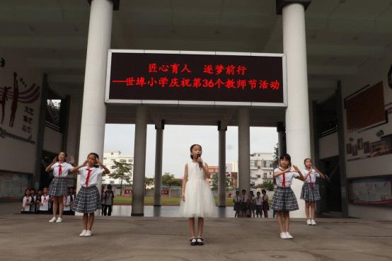 首先,四 2 班梁瑾萱同學(xué)獻(xiàn)唱《聽我說(shuō)謝謝你》,表達(dá)對(duì)教師的謝意和祝福,贏得了在場(chǎng)老師們陣陣熱烈的掌聲。