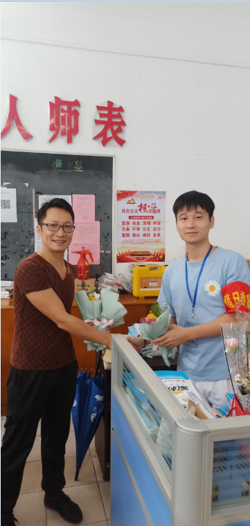(家委代表們手捧鮮花向老師們送來滿滿的節日儀式感)