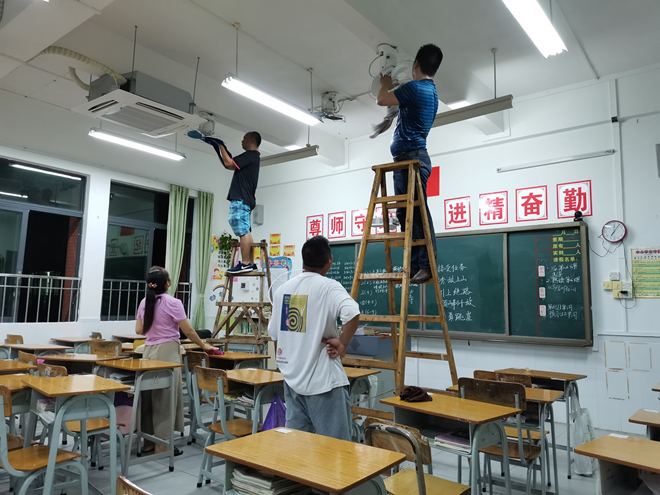 與此同時,學校還安排了清潔人員對學校樓道、活動場所(大堂、操場、草坪)以及各樓層走廊和廁所進行全面清潔、消毒,預防蚊蟲對學生的傷害。