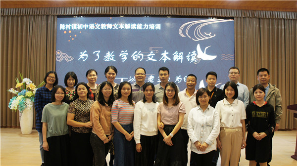 10月21日下午,此次教研活動在陳惠南紀念中學報告廳開展,由陳惠南紀念中學林涵老師主持,陳村鎮教育教學研究室劉俊老師、語文中心教研組組長李珊珊以及全鎮各初中學校語文科組的老師參加了此次專題培訓。