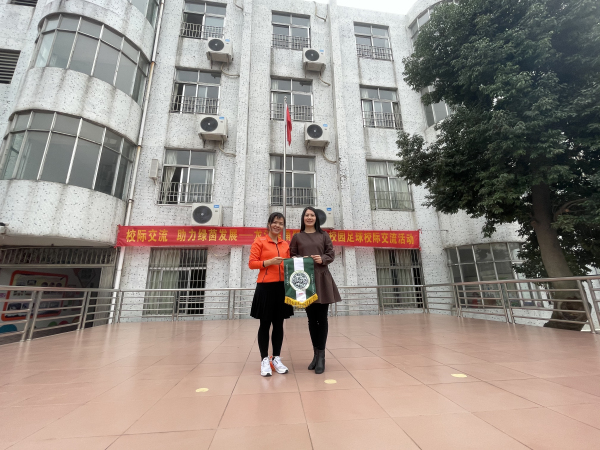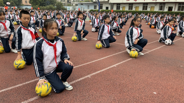 匯報交流結束之后,來訪一行領導和老師來到聚龍小學的操場觀看聚龍小學的足球大課間展示活動。只見聚龍小學的學生們以班級為單位,跟著音樂的節拍進行顛球、踩球、踢球、運球等足球動作,架勢十足,跑操環節所有的正副班主任更是帶著學生一起跑動起來,師生步伐整齊劃一、節奏感十足贏得來訪者一致的贊賞。足球小組活動環節,佛山裕達足球俱樂部也對聚龍小學足球隊進行了訓練課的展示。最后,陳涌聚龍小學鄒雪琴校長為兄弟學校贈旗表謝意。