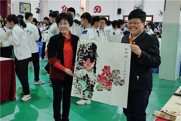 紅棉藝術節活動的熱潮一浪接一浪,緊接著我校十個班級以大合唱的形式禮贊紅棉,歌詠青春,唱響容山精神。我校為發揚書院文化與書香文化,與紅棉藝術節同期舉辦的還有引人矚目的讀寫活動。同時我校特邀來到現場的著名藝術家們也參與到活動中去。