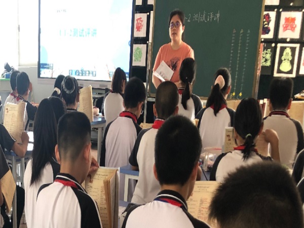 最終,李秋琴老師代表六年級科組為全體英語教師呈現(xiàn)了一節(jié)邏輯清晰有序、師生互動默契自然的評講課。六年級試題題量較大,難度提升,但李老師的知識評講鞭辟入里,又穿插拓展練習,給學生們充足的小組合作、鍛煉展示的機會,使得學生們個個聚精會神,積極發(fā)言,緊跟李老師的教學節(jié)奏,盡享知識帶來的樂趣與成就感。 李老師評講細致全面 學生們聚精會神,認真做筆記 隨后,周校對本節(jié)課進行了細致深刻的點評,她贊許了城區(qū)小英人們團結奮進的精神力量,肯定了李老師扎實的教學功底,也稱譽我們城區(qū)孩子良好的課堂行為習慣。此外,周校更是悉心分享了她們科組評講課的范例,并就如何為孩子們攻堅克難、引導其形成良好的學習積累、自主糾錯、總結方法經(jīng)驗的學習品質提出了寶貴建議,與會教師感觸良多,受益匪淺。 周校細致點評,傾情分享 在盧主任的帶領下,城區(qū)小英人積極落實一次次研討活動,為英語課堂增效,為教學提質不斷添磚加瓦!相信,城區(qū)小英人這份執(zhí)著與辛勤,這份團結與干勁,將為城區(qū)學子們的快樂學習成長注入源源不斷的力量! (撰稿:吳敏瑞 審核:盧倩賢)