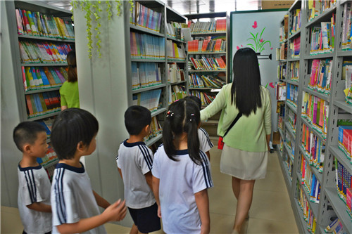 活動第二站,在奮揚學校一年級級長楊寶瑩教師的帶領下,幼兒園小朋友們參觀了學校的宣傳欄、教室、科學室、圖書室、美術室、廁所等校園環境,充分了解小學的學習與生活環境。