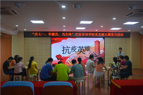 為慶祝中國共產黨成立99周年,引導廣大黨員教師重溫黨史、學習時代楷模精神、表揚先進、及時樹立先鋒模范,弘揚黨的優良傳統,傳承紅色基因,踐行共產黨人的初心使命。2020年6月28日下午,仕版奮揚學校黨支部開展”慶七一,學模范,當先鋒“主題黨日活動”。