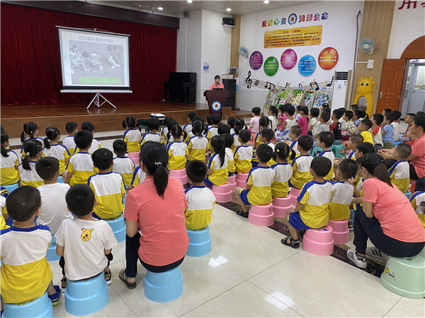 中班級長根據幼兒年齡特點,利用多媒體課件、圖片、故事、兒歌等形式,讓幼兒了解易發生溺水事故的危險地帶,分析如何避免溺水、如何自救的相關安全知識。其次,結合實際情況創設情境進行求救、互救的防溺水實踐演練,保健醫生現場示范了溺水施救、人工呼吸、心肺復蘇等動作要領。最后,級長做了防溺水應急演練總結性發言,讓幼兒明白了不能在沒有家人陪同的情況下擅自游泳,懂得珍愛生命的意義。