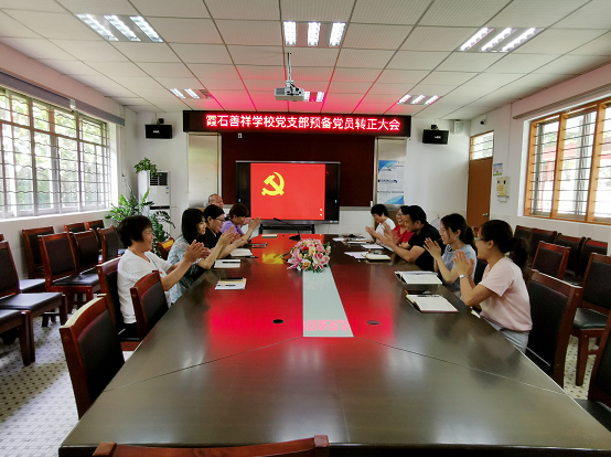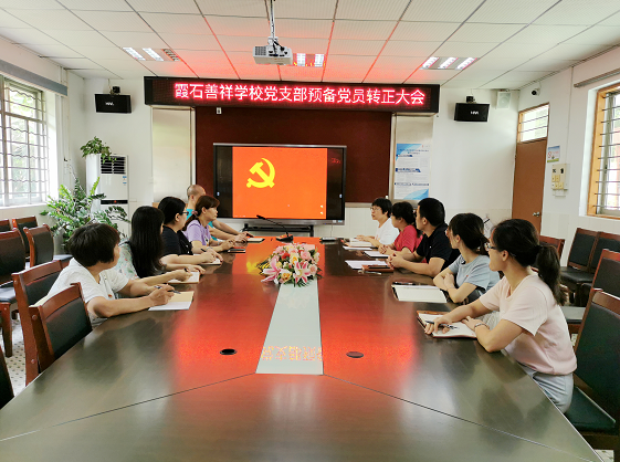 7月1日,在中國(guó)共產(chǎn)黨建黨99周年到來之際,霞石善祥學(xué)校黨支部在支部書記馮志峰同志的組織下召開全體黨員大會(huì),研究預(yù)備黨員黃觀德同志的轉(zhuǎn)正問題。