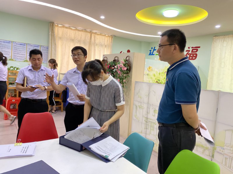 檢查組一行對照創文標準,認真檢查了學校公共環境衛生、文明創建氛圍等創文各項工作,詳盡查閱了相關檔案資料,認真聽取了涂校長關于學校創文工作的匯報,詳細詢問了解疫情期間創文工作的開展情況,并對下一步的創文工作作出具體安排部署。