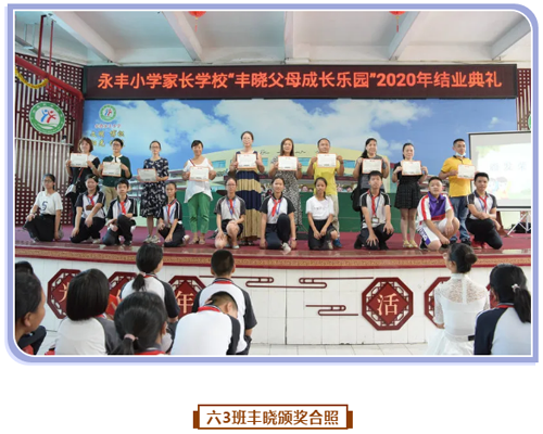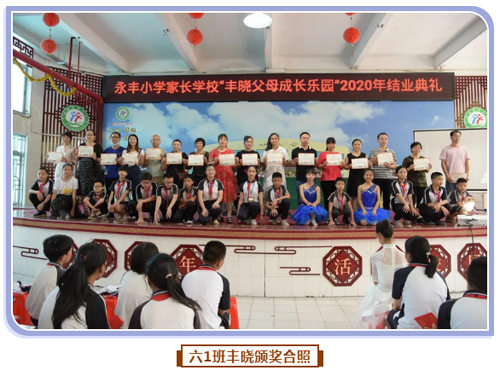 一張張稚嫩的笑臉,見證著孩子們的成長與歡樂。六年級的家長們在豐曉父母成長樂園已經學習了六年級了。孩子們畢業了,家長們也結束了在豐曉父母成長樂園里的學習,孩子們把家長帶上舞臺,為爸爸媽媽們頒發他們的結業證書!