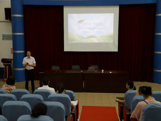 為推動華東小學的優(yōu)質發(fā)展,提升學校辦學品質,促進學生幸福成長。華東小學“幸福教育”特色品牌發(fā)展規(guī)劃在2020年7月17日下午舉行了文本解讀會。本次會議分為兩個流程:一是由《學校品牌管理》雜志的謝老師就華東小學“幸福教育”品牌發(fā)展規(guī)劃給全校教師進行了詳細解讀,二是再次誠邀廣州市白云區(qū)教育研究院專家王建春老師到校指導生動、能動幸福課堂的實施策略。