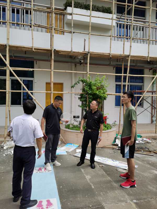 會后,何小祥校長及行政帶領安全組成員進行了校園安全隱患大排查。重點排查了校園工程的安全隱患。對工程施工進度、施工排山、隔離帶、消防器材等進行了全面細致地檢查,并對檢查中發現的問題及時記錄并整改,杜絕安全隱患。