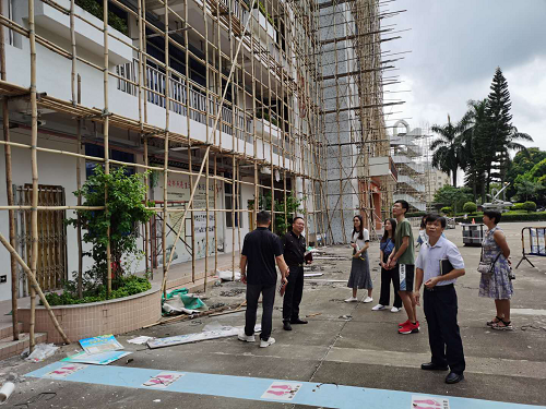 何小祥校長及行政帶領安全組成員巡查校園工程隱患