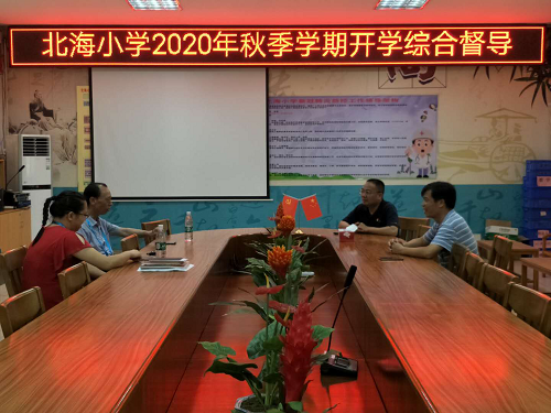 2020年9月8日下午,順德區責任督學謝斐副校長和何雪文副書記到北海小學開展2020年秋季學期開學綜合督導活動。兩位督學首先聽取何小祥校長及何永泉副校長關于學校開學工作情況的匯報,然后兩位督學在校領導的陪同下實地對學校疫情防控、教育教學、安全工作、規范辦學行為、常規管理、后勤保障等方面情況進行了認真細致地檢查。重點檢查了學校防疫物資儲備、校園設施、衛生情況,以及疫情的預防工作落實情況等。最后,兩位督學對學校的工作提出了寶貴的意見。