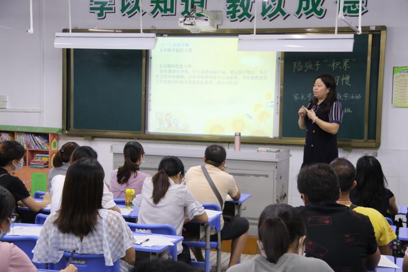 隨后,家長們都移步到自己孩子所任教的班級,由各班主任進行以《陪孩子積累好習慣》為主題的《父母課堂》案例教學,并與家長分享了一些具體的家庭教育建議。課堂上,家長們時而專心致志地聆聽,時而積極熱烈地討論。同時,各班語、數、英教師也向家長匯報了今學期以來學生的課堂表現、作業情況等,并提出了相關的建議。
