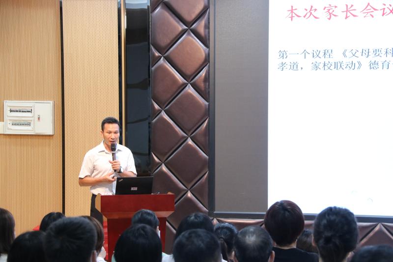 活動的開始,在學校電教室,家長們匯聚一堂。李志倫副主任向全體家長作了“五德”教育之孝德主題分享與《父母要科學、理智地愛孩子》講座,通過一個個案例讓家長了解愛的誤區的種種表現,傳授家長要懂得科學、理智地愛孩子的方法。