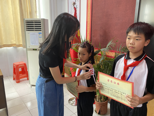 9月25日下午,鐘淑惠輔導員老師公布了新一屆少先隊大隊委員名單,并為新一屆大隊委員頒發聘書、授予隊干標志。