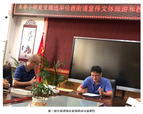 根據街道黨建工作安排,倫教街道宣傳文體旅游和教育線永豐小學黨支部于10月23日中午在會議室舉行倫教街道宣傳文體旅游和教育線黨委黨代表選舉和“兩推”工作會議。出席會議的有我校黨支部的黨員和駐我校支部的倫教街道宣傳文體旅游和教育線支部成員劉鵬。