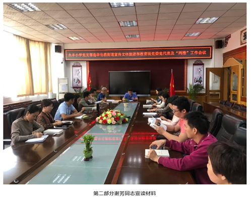 第一部分是召開倫教街道宣傳文體旅游和教育線黨委換屆選舉動員大會,會議由鄧源強支委主持,他強調黨委的換屆是黨員群眾政治生活中的一件大事。要求全體黨員要堅持全面貫徹黨的十九大精神,深入貫徹落實科學發展觀,以《黨章》和《中國共產黨基層組織選舉工作暫行條例》為依據,選好配強新一屆黨委領導班子。