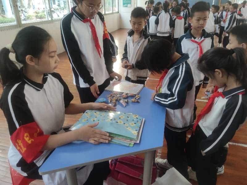 這天上午,在大隊部的組織下,培教小學“微笑商店”如期開業。大隊委們充當起售貨員,準備好各式各樣的禮品,等待著同學們的到來。同學們帶著自己積攢已久的微笑幣,爭先恐后地排著隊伍,兌換自己想要的禮物:便利貼、文件袋、眼罩等等,有的精美,有的實用。現場活動秩序良好,同學們都兌換到了自己心儀的禮物,他們臉上洋溢的微笑就是最好的證明。