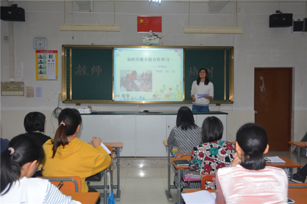 緊接著,英語科組吳麗兒老師結(jié)合科組全體教師的智慧,分享了“學(xué)導(dǎo)練”師友互助教學(xué)模式在英語教學(xué)中的運(yùn)用。如師友小組合作賽讀提高學(xué)生英語口語練習(xí)的積極性;師友互助記憶單詞、句子,小組長責(zé)任制既有利于鍛煉學(xué)生的自主管理能力,同時(shí)讓學(xué)生成為學(xué)習(xí)的主人。