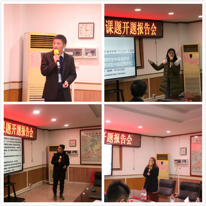 隨后,各課題主持人宣讀開題報告。陳鐘鵬、黃曉丹、莫興展、周君令中學何嘉棋老師4位課題負責人分別就各自課題的研究背景和意義、研究內容、研究方法、研究思路、研究過程、組織分工以及預期成效成果等方面等進行了闡述。