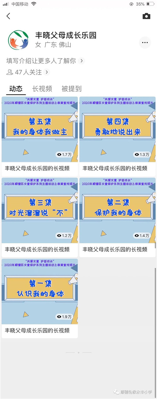 為了拓寬豐曉父母成長樂園的網絡學習平臺,豐富家長們的學習課程,2020年底,永豐小學成立了動漫制作小組,在豐曉父母成長樂園的網絡學習平臺“微豐堂”上創立“微動漫”項目,嘗試采用動漫的形式向家長們進行家庭教育知識的宣傳。在順德區婦聯、順德區家庭教育聯合會的指導下,動漫小組制作了五期女童防性侵的家庭教育系列小動漫,視頻發布后,受到了家長們的好評,點擊率最高達到了1.9萬!