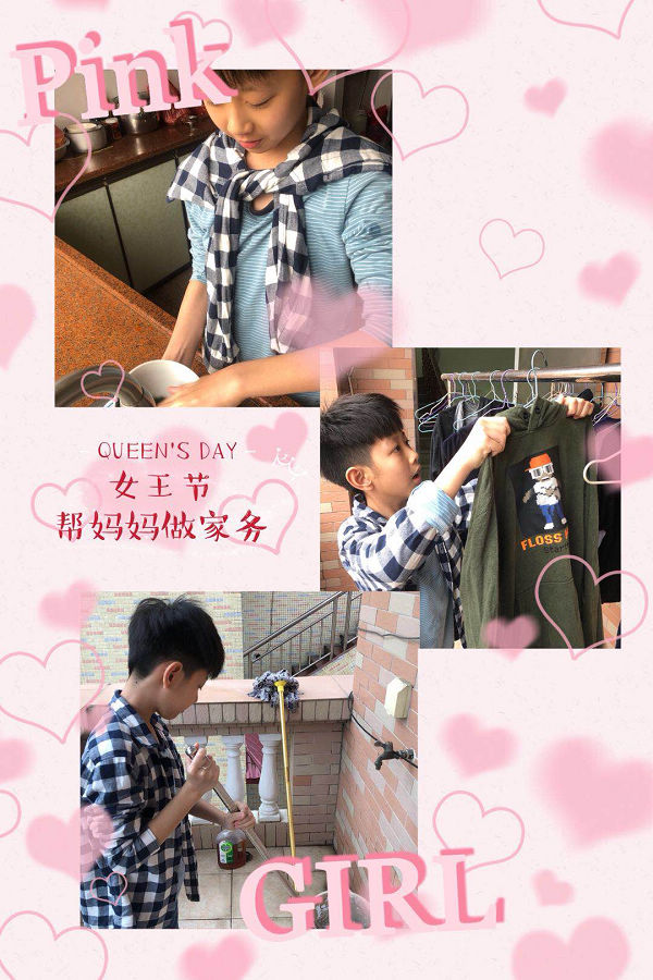 親愛的媽媽,平時您做家務挺累的,今天好好休息休息一下,讓我為您分擔一點家務吧 !