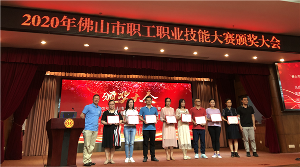 9月25日,主辦單位在佛山市工人文化宮舉辦了隆重的頒獎儀式,授予吳勁茵老師“佛山市技術能手”稱號,授予吳勁茵、黃燕娜和馮坤老師“佛山市技能競賽技術能手”稱號。