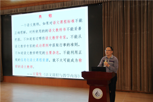 此次活動共分為4個環節:先是對“文本解讀”評比活動的優秀作品進行頒獎,再由各校代表分享他們的文本解讀思路。接下來是周華章老師開展講座,最后教研室劉俊老師、語文教研組李珊珊老師對本次活動進行總結。