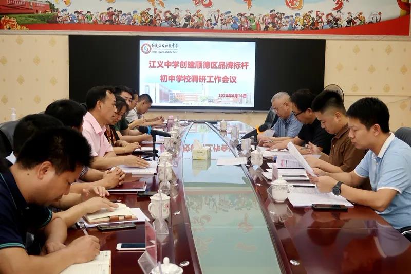 2020年6月18日,勒流街道教育局常務副局長王家倫到江義中學開展創建區品牌初中學校工作調研,胡靜、甘永杰、宋慶發陪同,江義中學行政班子參加了調研會議。