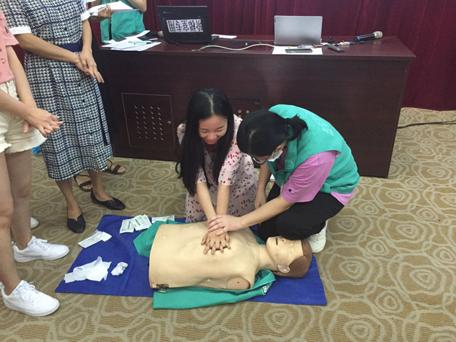 為了向廣大教職工普及緊急情況自救能力,增強自我保護意識,促進廣大教職工的身心健康。6月30日下午,龍江社區(qū)衛(wèi)生服務中心張運雙臨床醫(yī)師給我校舉辦了“徒手心肺復蘇術”知識講座活動。