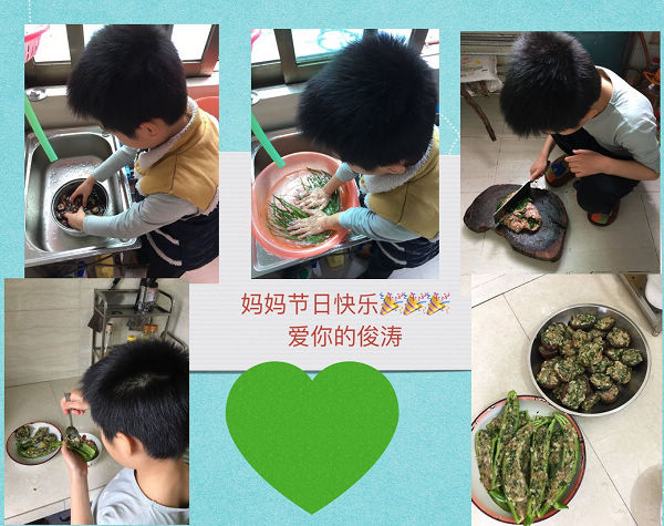 親愛的媽媽,平時您做家務挺累的,今天好好休息休息一下,讓我為您分擔一點家務吧 !