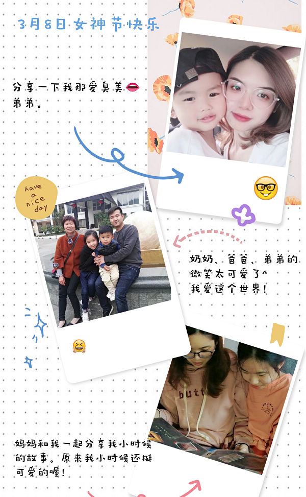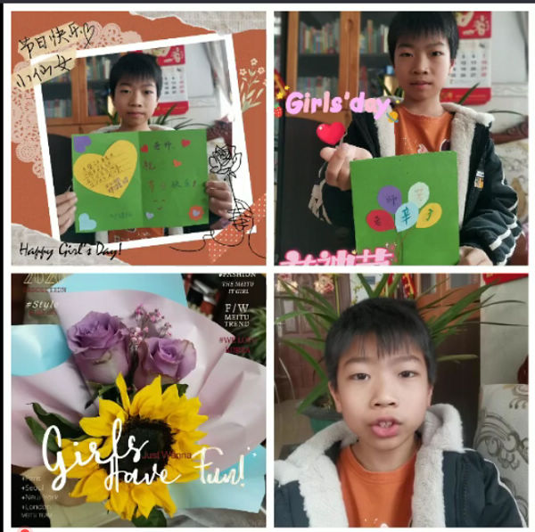 時光可以暗淡容顏,但帶不走美麗;勞作可以粗糙雙手,但帶不走關愛。陽春三月,萬物復蘇,在這個春暖花開的季節,一年一度的“三八”國際婦女節來臨了,為了讓少先隊員學會付出、學會回報,懂得孝敬、懂得體諒長輩的良苦用心,羅沙小學大隊部現向全校少先隊員發出倡議,號召全體少先隊員在這個特殊的節日里,用自己的行動去做一些力所能及的小事情,為媽媽、奶奶、外婆、老師等女性長輩們獻上他們最真誠的祝福!下面我們一起來看看他們“三八”當天,他們都是如何把愛獻給最美女神的吧!