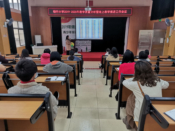 4月2日,勒竹小學(xué)里花紅樹碧,一片春意盎然,而此刻電教室里燈火通明,勒竹小學(xué)正在召開針對新型冠狀病毒肺炎疫情防控期間線上教學(xué)工作的推進會。會議由姚永紅副校長主持,蘇振國校長、教務(wù)處正副主任和各位教師參加會議。