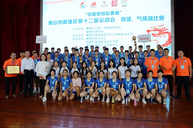 2020年9月26日上午,順德區(qū)第十二屆運動會排球(氣排球)賽在江義中學(xué)落幕。江義中學(xué)排球隊代表勒流街道出戰(zhàn)區(qū)運會,經(jīng)過6天的頑強拼搏和激烈角逐,男隊最終收獲青少年乙組冠軍,女隊獲第四名,勒流街道同時評為“體育道德風(fēng)尚獎”。