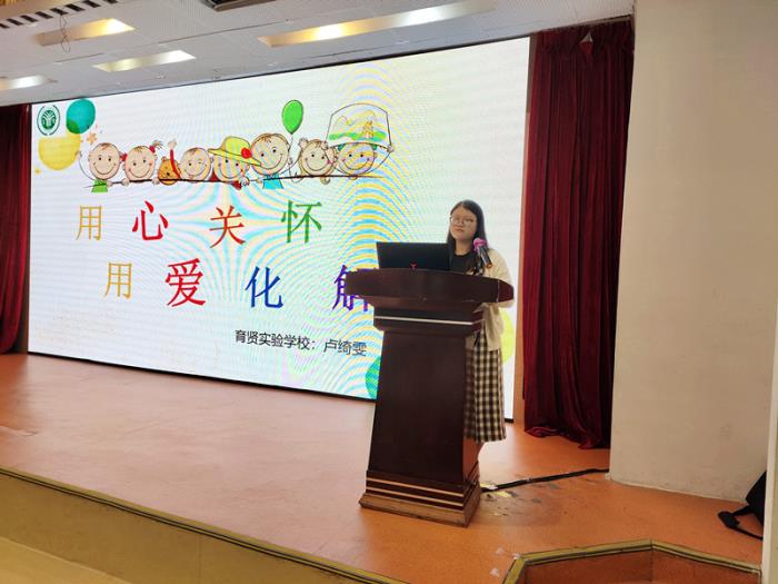 面對低年級學生年齡小,生活自理能力差,無法適應寄宿生活的問題,一年級盧綺雯老師以《用心關懷,用愛化解》為主題,以實際案例為切入點,向老師們介紹自己的經驗方法。她表示在仔細了解每個人孩子不同的心理的基礎上,運用智慧和技巧,用心關懷他們,用愛緩解他們的分離焦慮,打開他們的心扉,幫助他們盡快融入新集體,適應住校生活。一句句質樸的話語,讓在座各位老師啟迪良多。