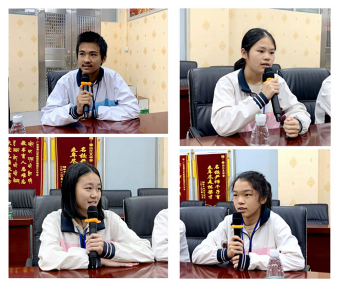 會上,學生代表暢所欲言,就班級學風建設、班級教師教學情況、同學們行為習慣、校園基礎設施等方面等方面的工作提出意見和建議,并借此機會對辛勤付出、和藹可親的老師們表示了衷心的感謝。胡校長針對學生代表所反映的問題一一進行了現場解答,并詳細進行了記錄。