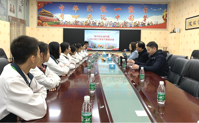 為了聽取學生的意見建議,滿足青年學生成長成才的需求,提升學校管理育人、服務育人的針對性與實效性,2020年12月25日,我校九年級舉行“我與校長面對面”學生代表座談會。我校胡和秋校長、劉啟文副校長與初三的10名學生代表一起面對面傾心交流。座談會由九年級級長楊肖君主持。