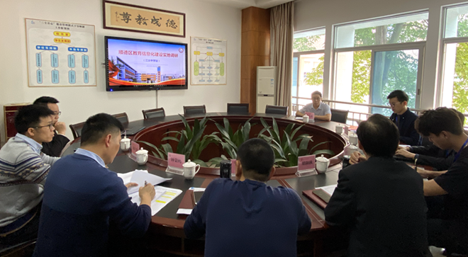 隨后,調研組跟學校中層領導、智慧課堂任教老師、信息化設備管理老師做了詳細交流,進一步了解學校信息化項目及功能室場設備具體情況。