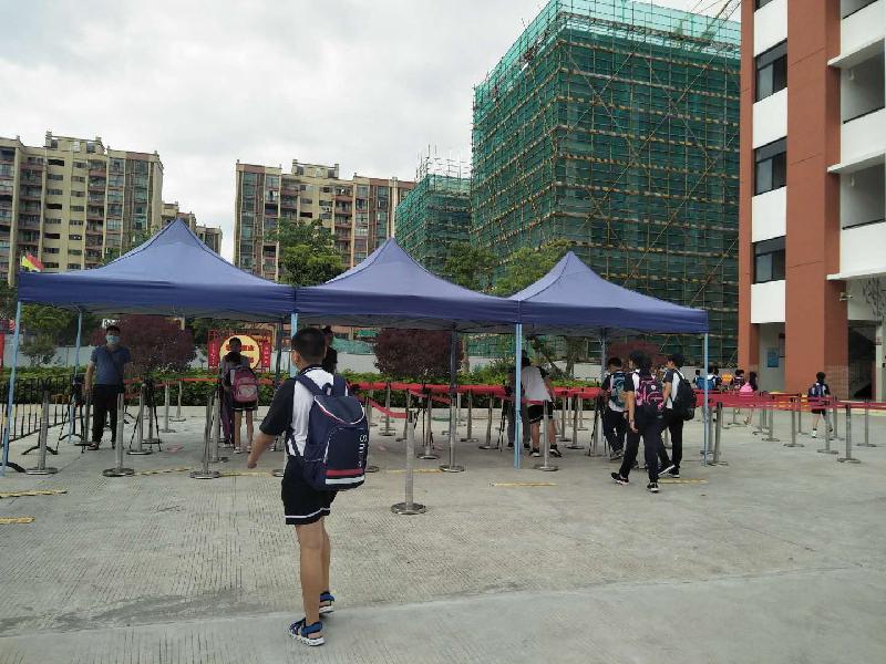 圖1:有4位教師在測溫點檢查師生是否有體溫異常