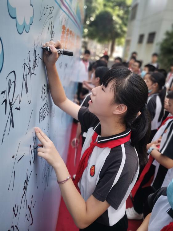 最后,同學們在簽名墻上簽上自己的名字,攜著回憶,帶著感恩,懷著理想,即將翻開他們人生嶄新的一頁。