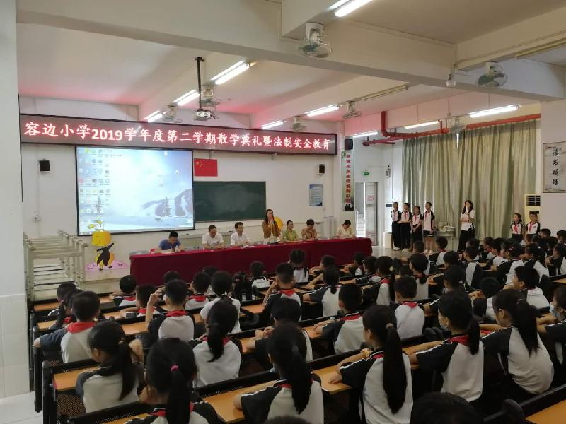7月17日下午,容邊小學在學校電教室舉行“2019學年度第二學期散學典禮暨法制安全教育”活動。學校的全體行政、駐校法制校長傅勇警官、各班學生代表等參加了典禮活動。