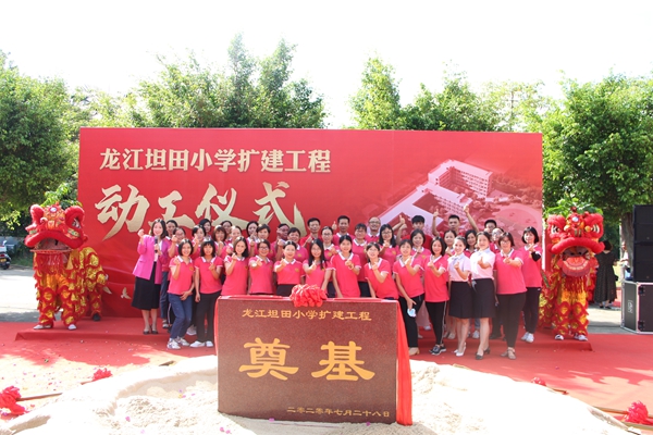 百年大計,教育為先。2020年7月28日上午,龍江坦田小學擴建工程項目動工儀式隆重舉行,龍江鎮黨委書記何春云,龍江鎮人大主席林定基,龍江鎮黨委副書記賴朝輝,龍江鎮黨委委員、鎮教育局局長歐陽伯洪,龍江鎮副鎮長盧國漢,龍江鎮副鎮長劉振峰,原順德區人大常委會副主任張教邦,龍江總商會會長、廣東南興天虹果仁制品有限公司董事長鄧惠娟,中國聯塑集團控股有限公司副總裁宋科明,志達集團創始人、志達教育慈善基金主任韓麗容,順德區政協委員、米蘭匯家居展貿中心董事長廖錦添,廣東鴻基家具實業有限公司副總經理陳蓮芳,佛山市人大代表、佛山市順德區建億建筑工程有限公司董事長鄧國福,佛山市盈悅環保工程有限公司總顧問鄧健光,東涌居委會書記、主任劉海祥,坦西村委會書記、主任張展熾以及龍江鎮相關辦局負責人、東涌、坦西兩委成員、各級人大代表、政協委員、社會賢達參與了這次動工儀式。
