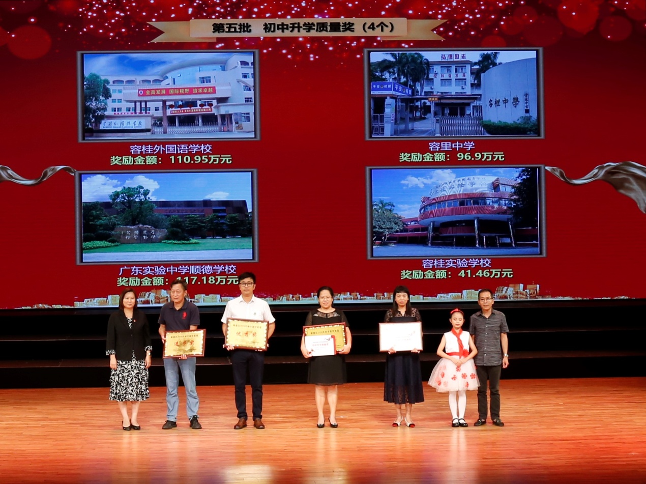 容桂外國語學校榮獲順德區“初中教學質量優秀獎”