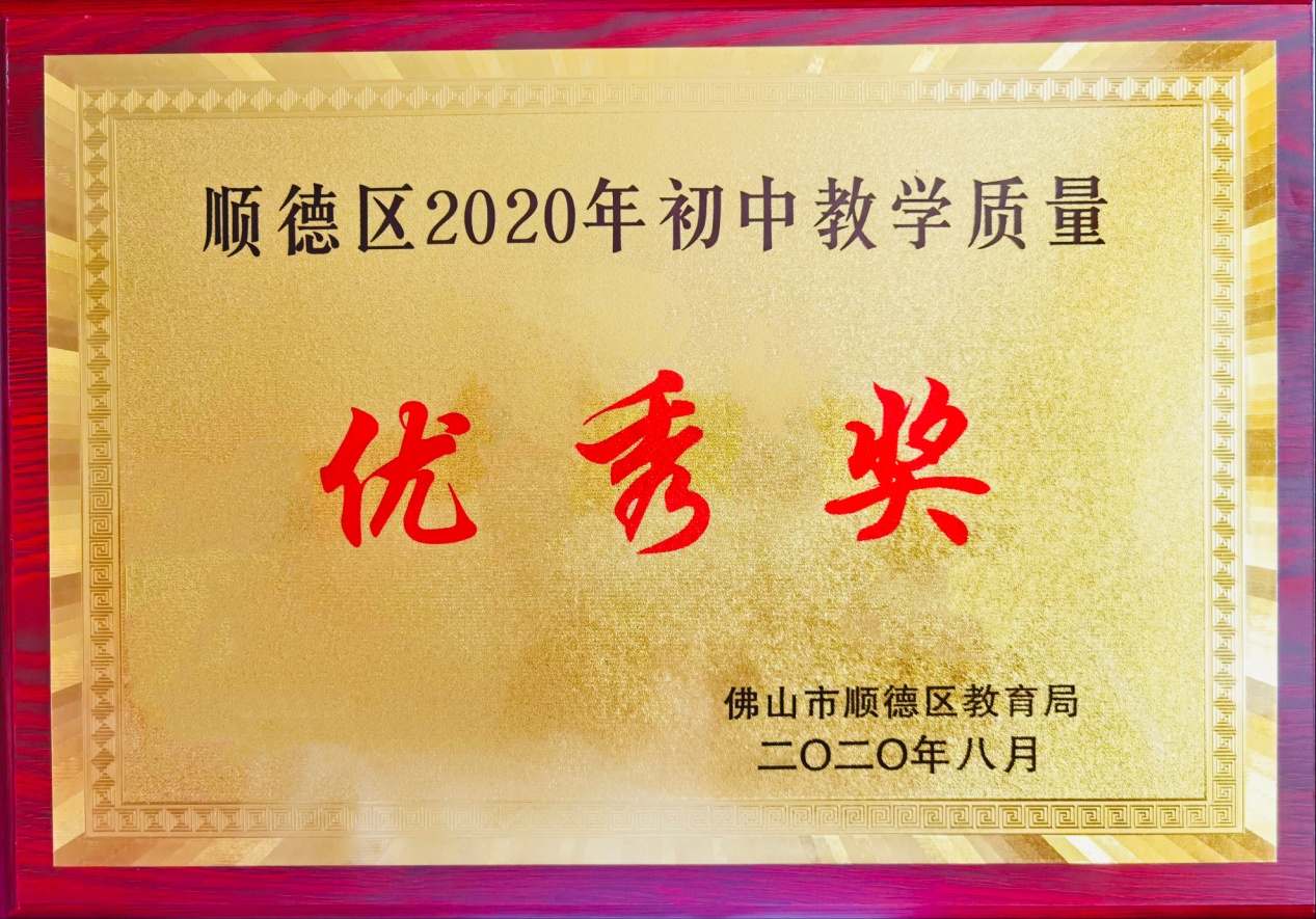 在過去一個學年以來,我校全體教職員工在“全面發展野 追求卓越”理念的引領下,圍繞“努力把容桂外國語學校建設成為順德優質,佛山地區有一定影響,充滿活力的特色學校;努力打造一支‘合格+風格’的教師隊伍;努力培養一批‘合格+特長’的學生”的目標不斷奮斗,辦學質量不斷提高,成績斐然。學期伊始,喜報頻傳,繼2019年后,再一次榮獲“順德區2020年初中教學質量優秀獎”!