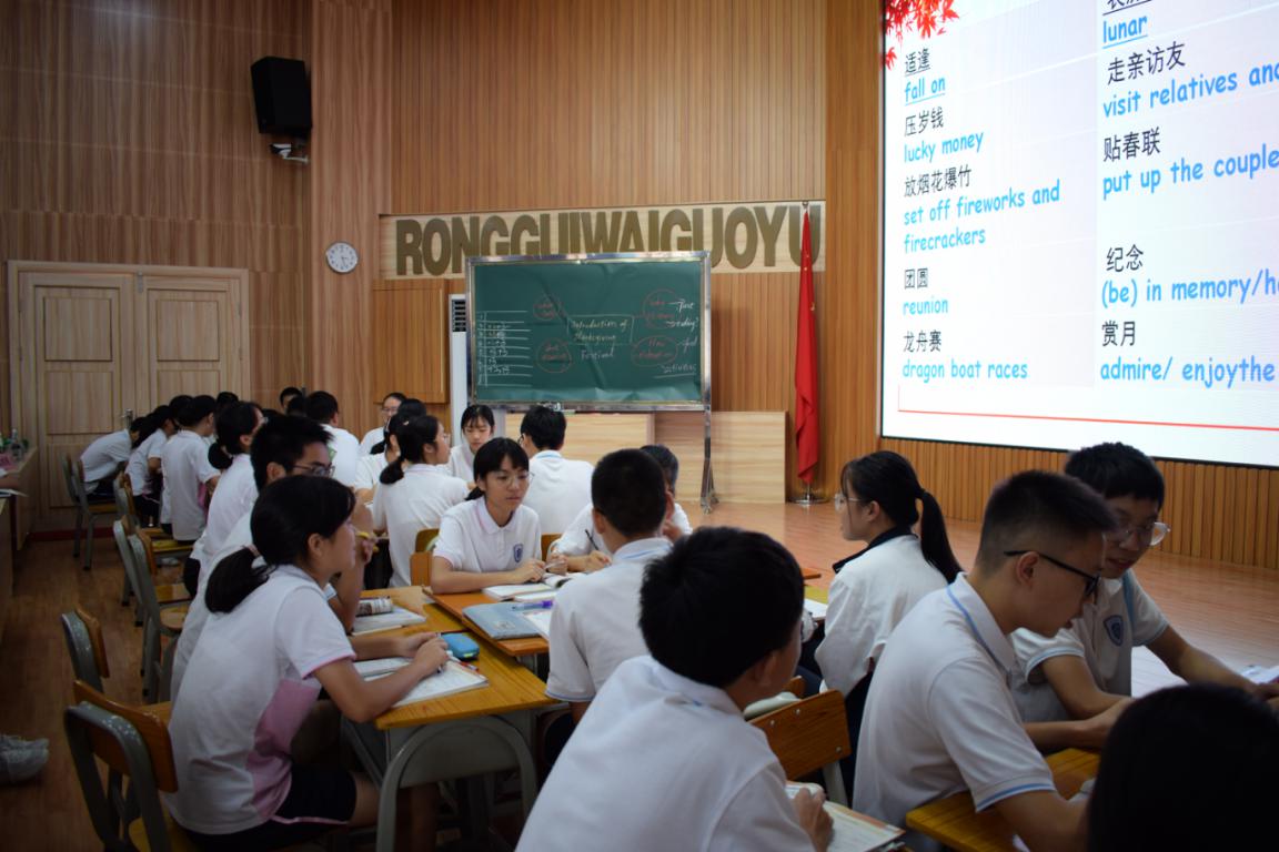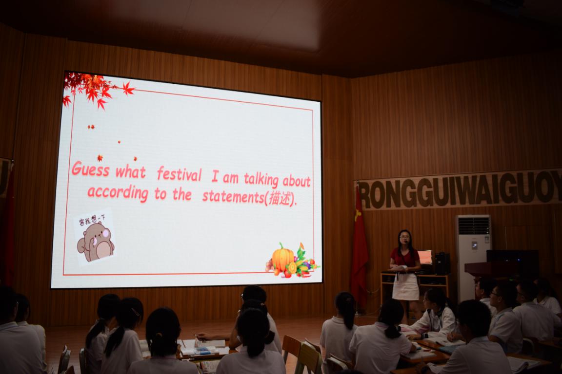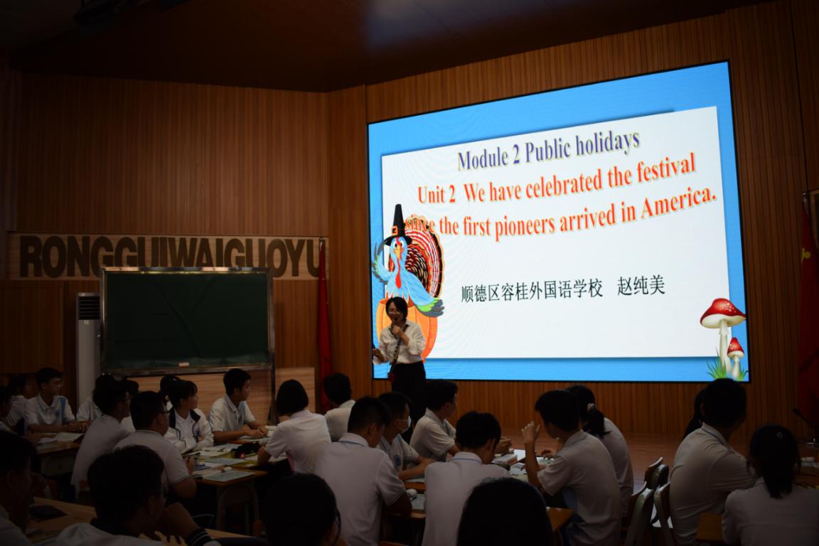 在課例展示環節,由來自容桂外國語學校的趙純美老師及羅定邦中學的許冬霞老師,對初三上冊Module 2 Public holidays Unit 2這一課進行了初高中同課異構的教學展示,分別為我們展現了不同的教學思維和教學課堂。
