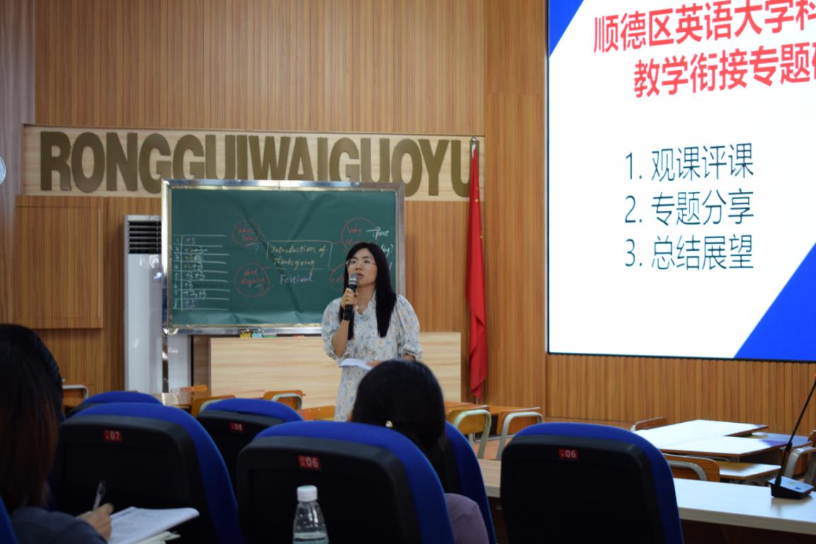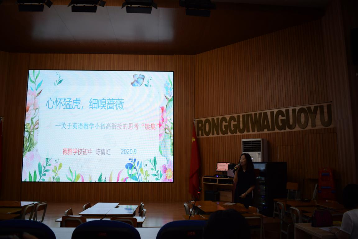 為了更好地幫助在座的小初高教師理解當前英語小初高銜接的現狀與潛在問題,促進銜接學段英語教學質量的提高,來自順德德勝學校的陳倩虹老師進行了分享經驗發言。