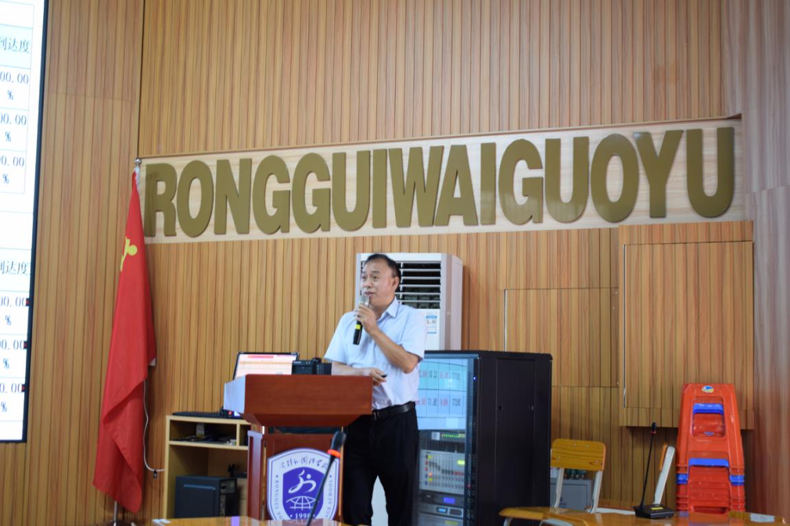 本次會議的承辦學校容桂外國語學校副校長周劍山進行致辭,他表示,一所學校的發展離不開教研,高質量教研活動的開展至關重要,熱烈歡迎教育同仁的到來。